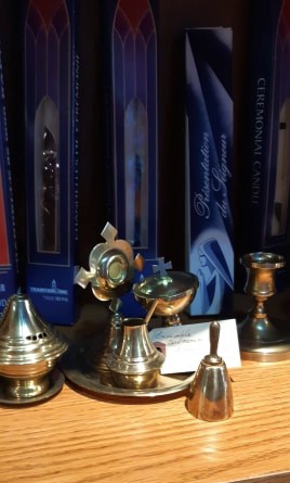 Catholique contenant sacré importé de Bruxelle ensemble pour célébrer messe, cérémonie, chandelles consacrées Résine original pour église CHANDELLES Cierges vigiles et lampions